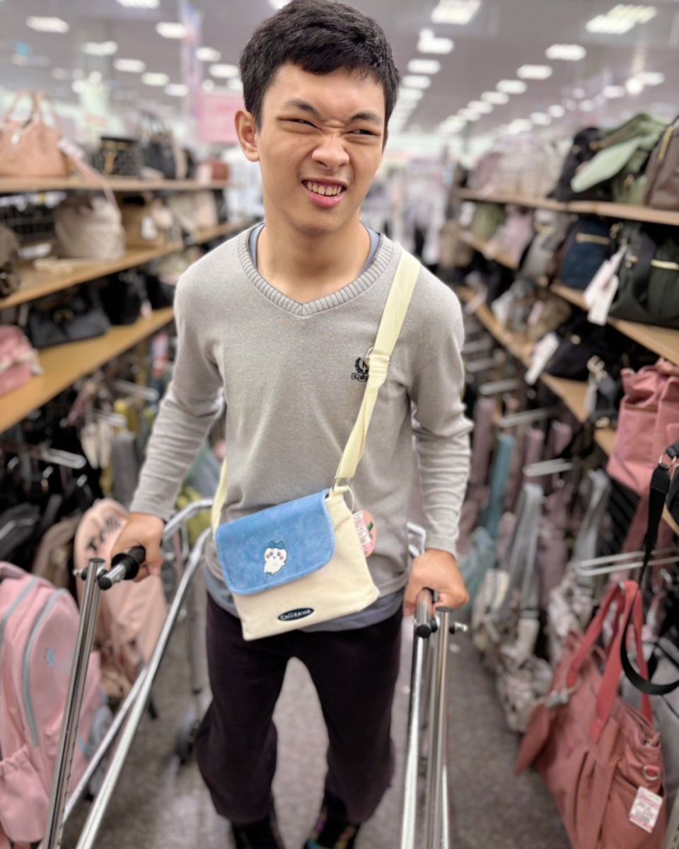 一走進賣場,院生們眼睛都亮了起來,有人開心試戴帽子,露出靦腆又滿足的笑容,有人推著助行器,帥氣挑選自己的小包包,走出自信步伐
