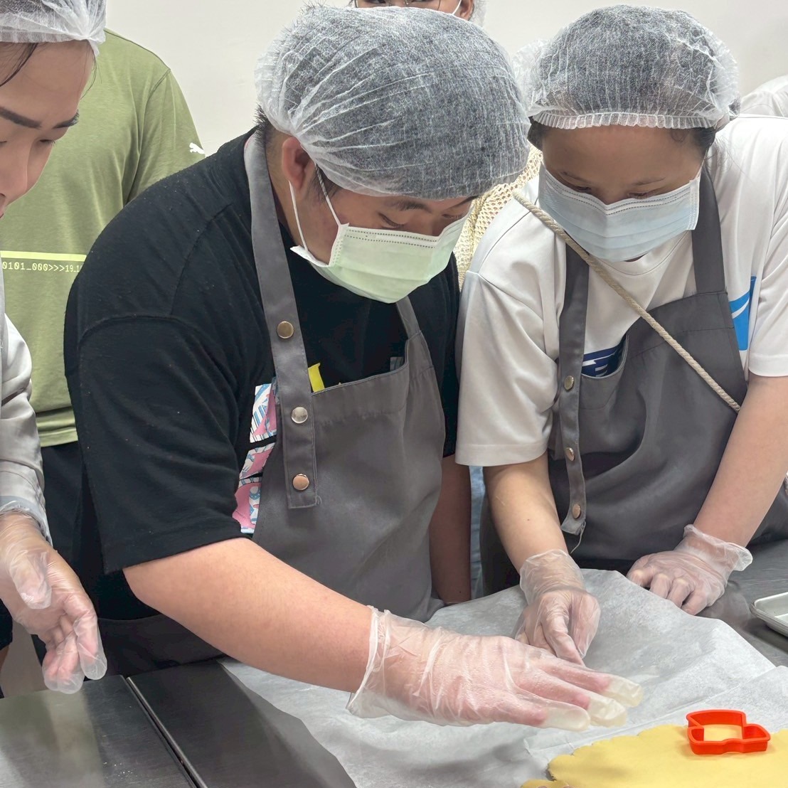 他們帶著笑聲、耐心,還有滿滿的愛,陪伴身障青年們一起揉麵🍞、壓模🍪、烘烤🔥。